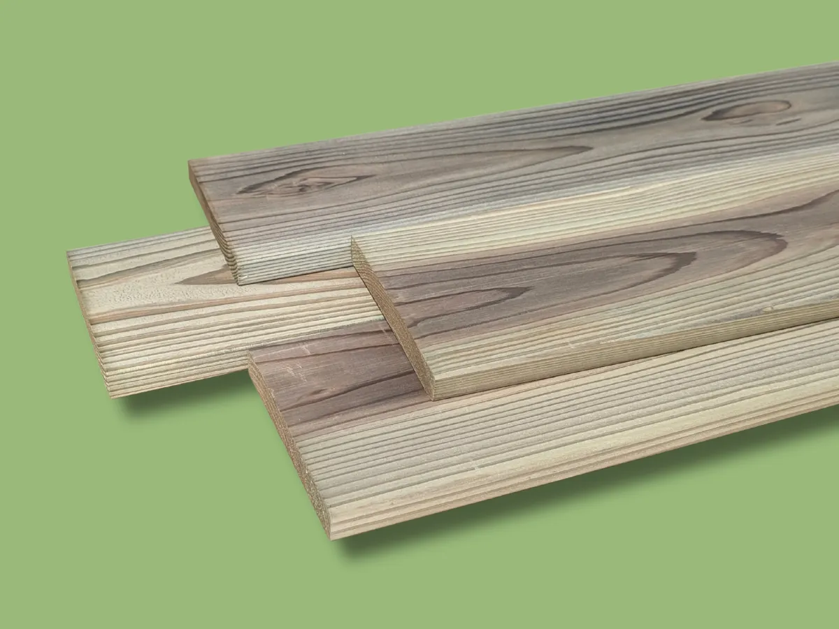 杉材・SPF材等の上小節・無節材をプレーナー加工、タナリスCY注入した外構材です。