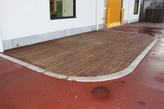 2016年8月24,25日 以前弊社で施工させて頂いた某商業施設ウッドデッキの再塗装へ行って参りました。