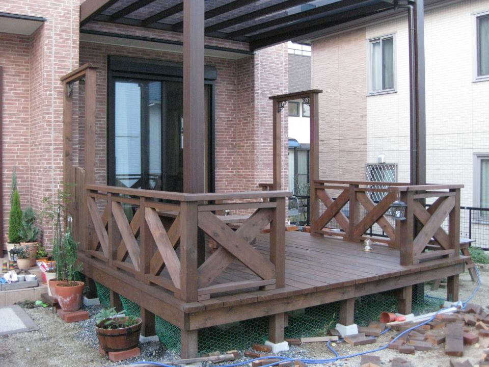 リビングに面した庭にウッドデッキを作りました。大がかりな木工は初めてです。材料はWRCのスタンダード~プロエリート。床面のみプロエリートで根太等はスタンダード。キシラデコールのウォルナット使用。もろもろ合計すると22万ぐらい。 |