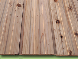 水に強い飫肥杉の赤身だけでできている耐久性に優れた壁材。屋外で使用する場合、無塗装だと美しいシルバーグレーに変化します。木の風合いを長く楽しみたい方は塗装をお勧めします。