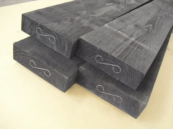 国産杉材を使用し、インサイジング加工・ヤニ抜き処理加圧式防腐防虫ACQ注入処理が施され、さらに木材保護塗料(黒色or茶色)を塗布した、新品枕木です。