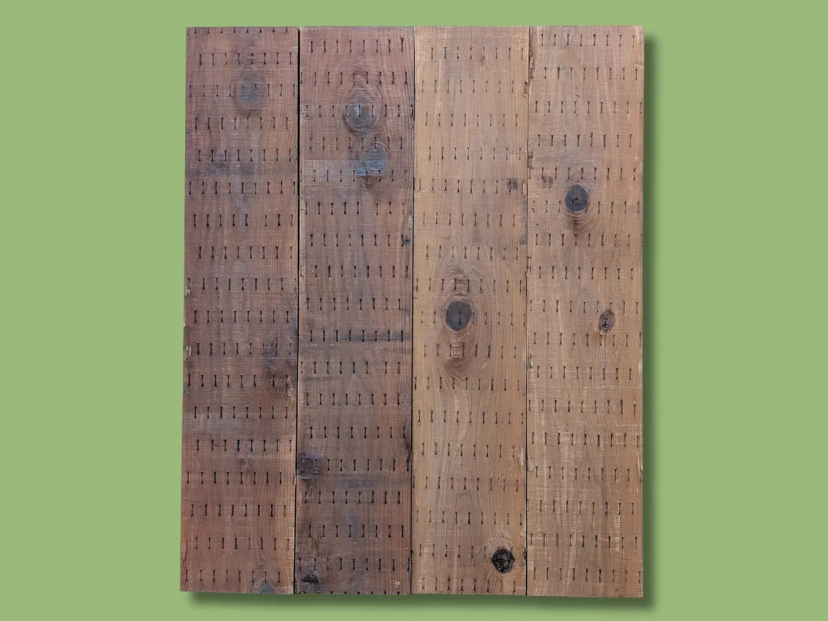 ラフ挽きされた国産杉にインサイジング加工を施し、